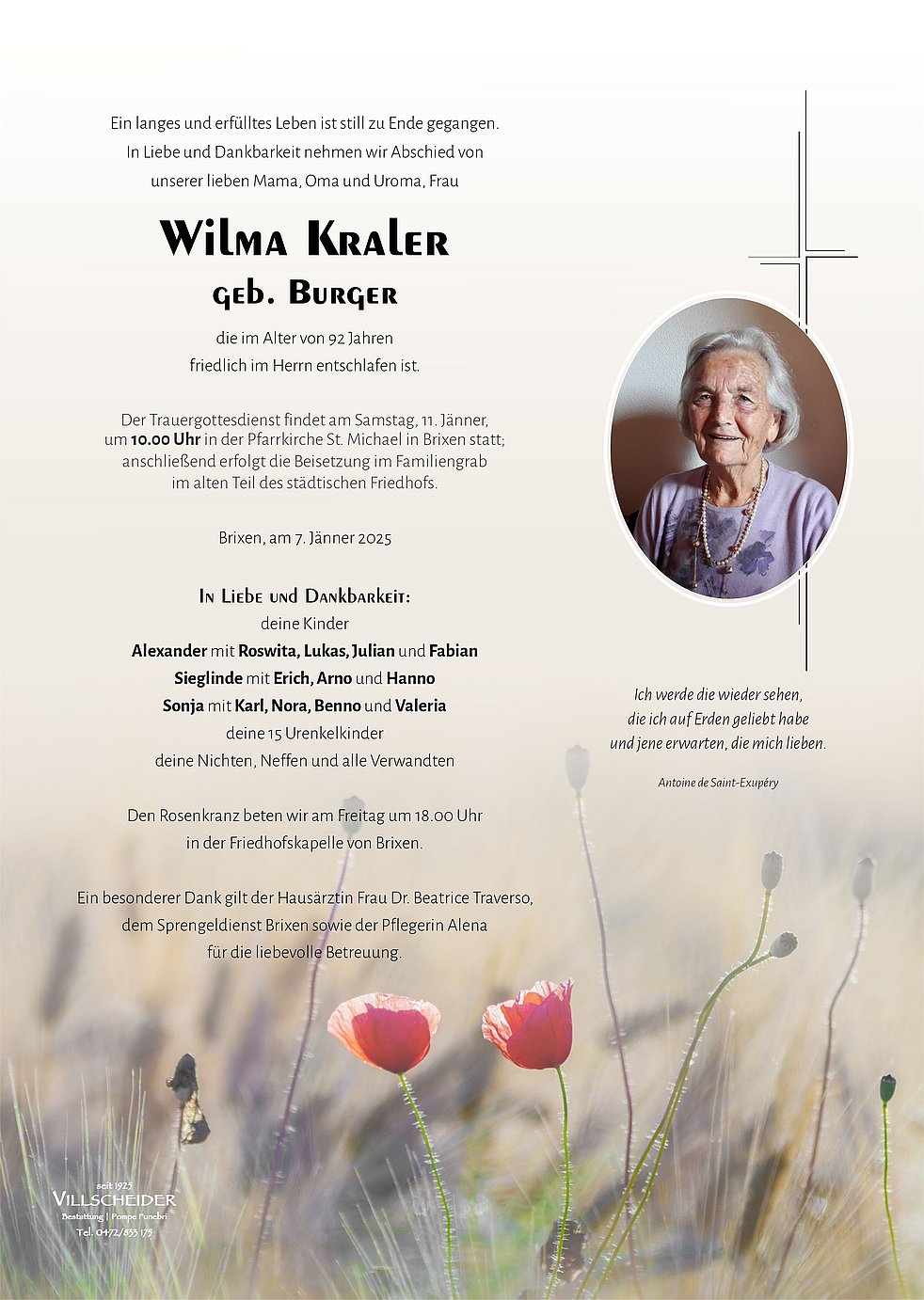 Begräbnisgottesdienst: 11.01. - 10:00 Uhr Brixen | Bressanone