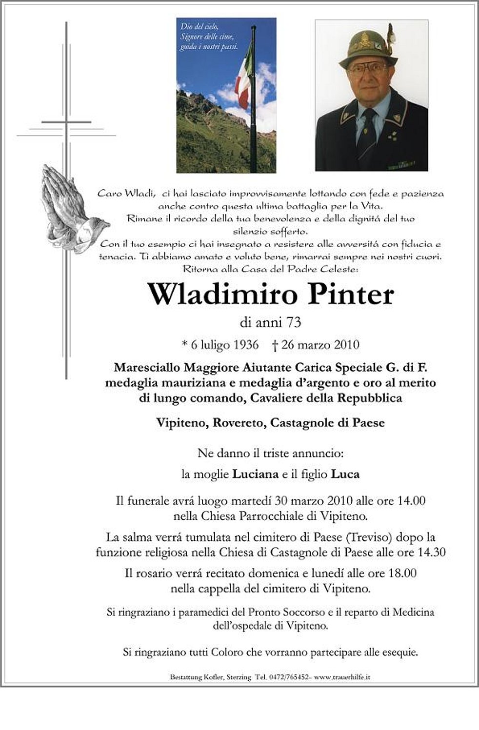 Il funerale avrá luogo martedí 30 marzo 2010 alle ore 14.00