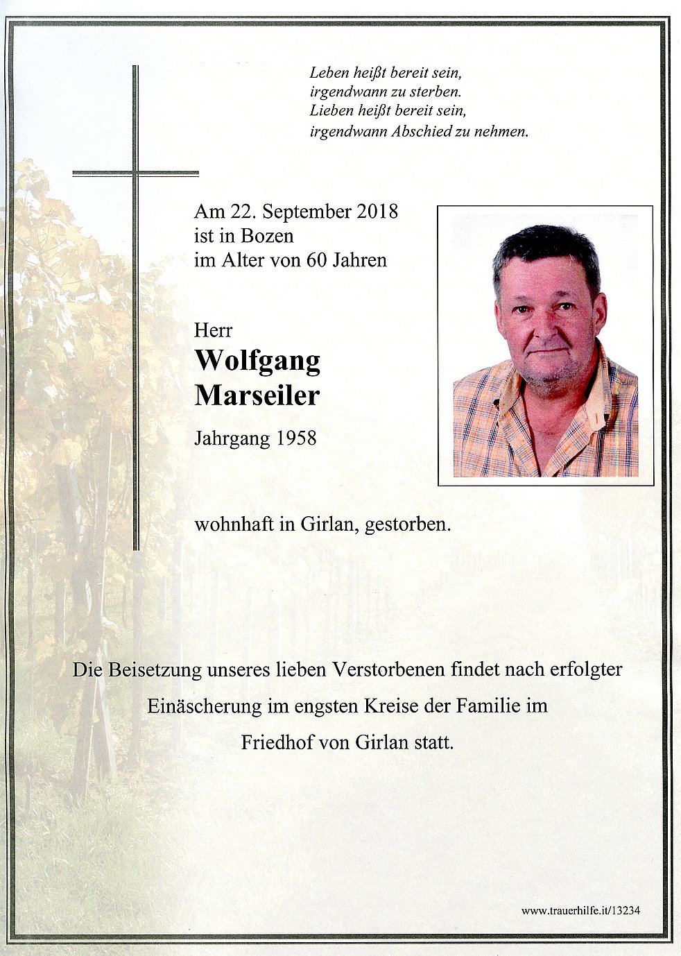 Unser lieber Wolfgang wird nach erfolgter Einäscherung im Kreise der Familie im Friedhof von Girlan beigesetzt.
