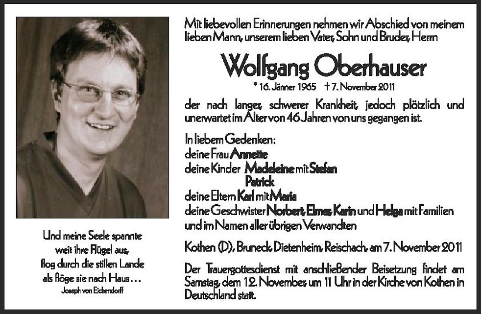 der nach langer, schwerer Krankheit, jedoch pöltzlich und unerwartet im Alter von 46 Jahren von uns gegangen ist.