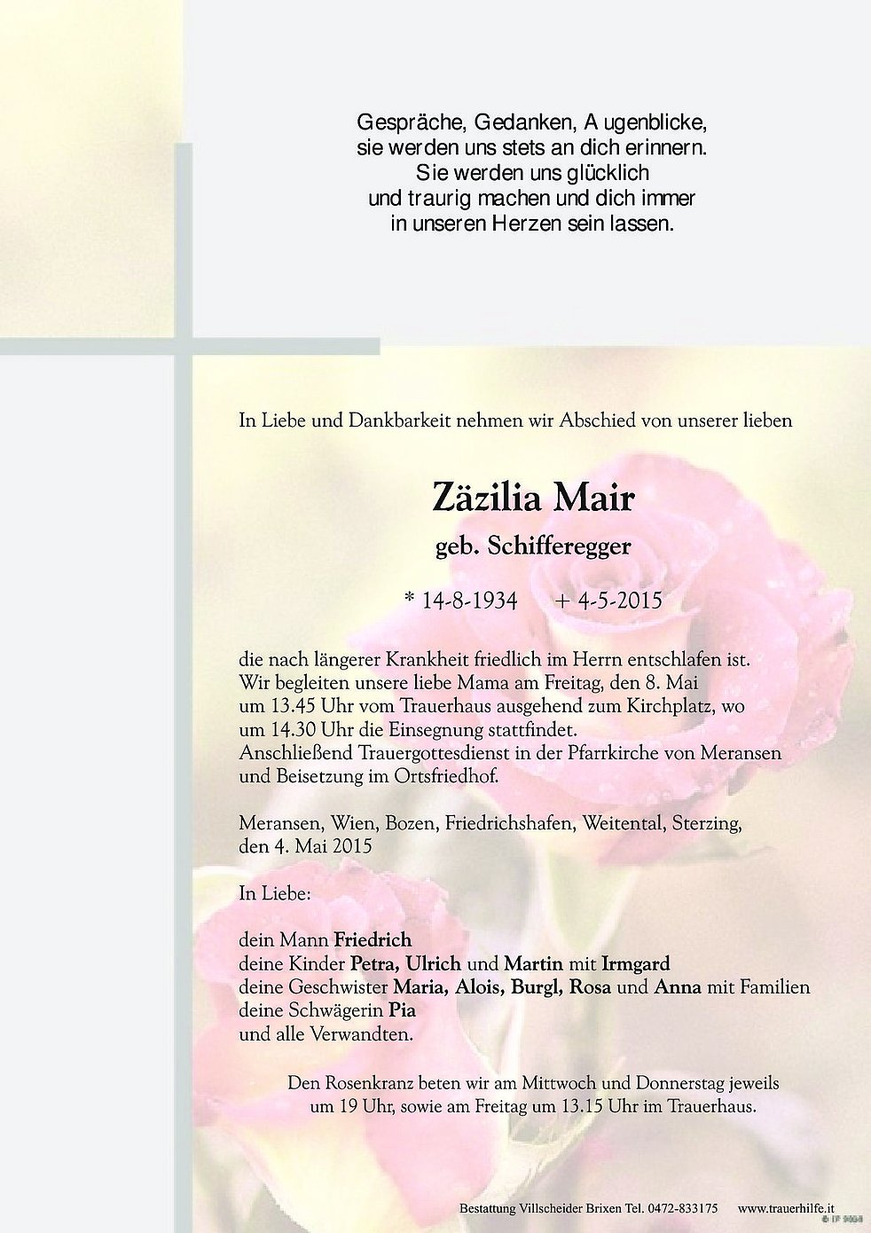 Wir begleiten unsere liebe Mama am Freitag, den 8. Mai