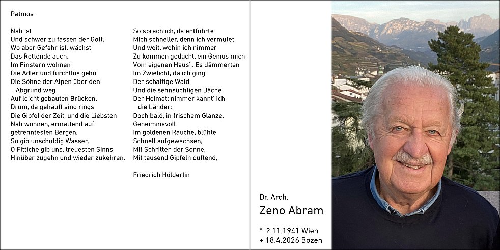 Den Trauergottesdienst feiern wir am Montag, den 27.April, um 14.30 Uhr im Dom von Bozen.