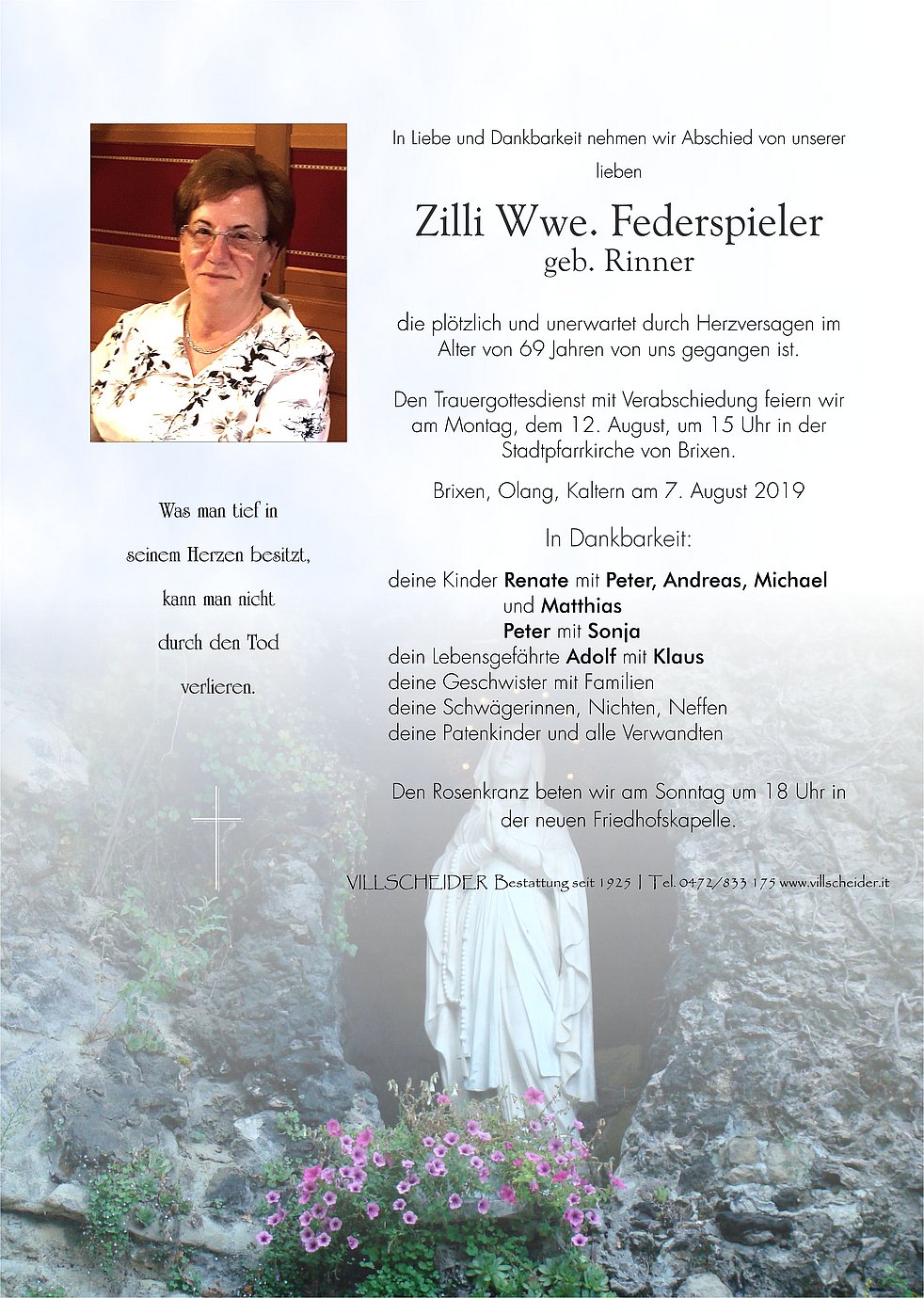 Trauerfeier: 12.08. - 15:00 Uhr Brixen