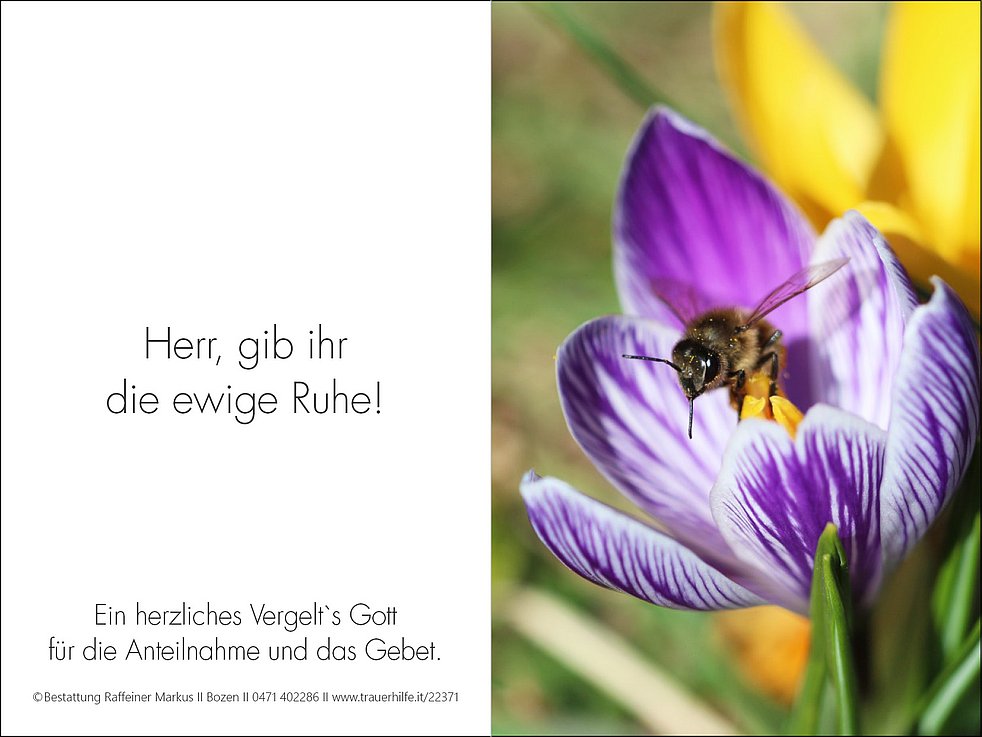 Anstelle von Blumen möge man für wohltätige Zwecke spenden.
