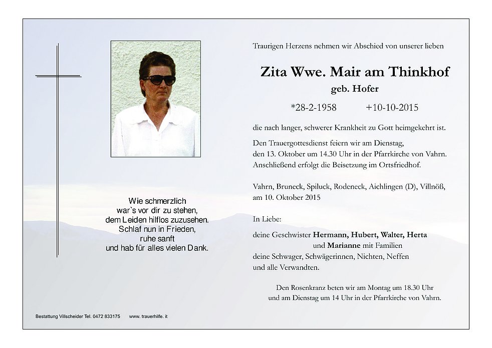 die nach langer, schwerer Krankheit zu Gott heimgekehrt ist.